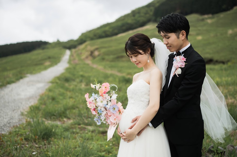 天候不良により延期となり約1年越しの撮影でしたが、延期中にご懐妊が分かりご家族3人での撮影となりました✽
