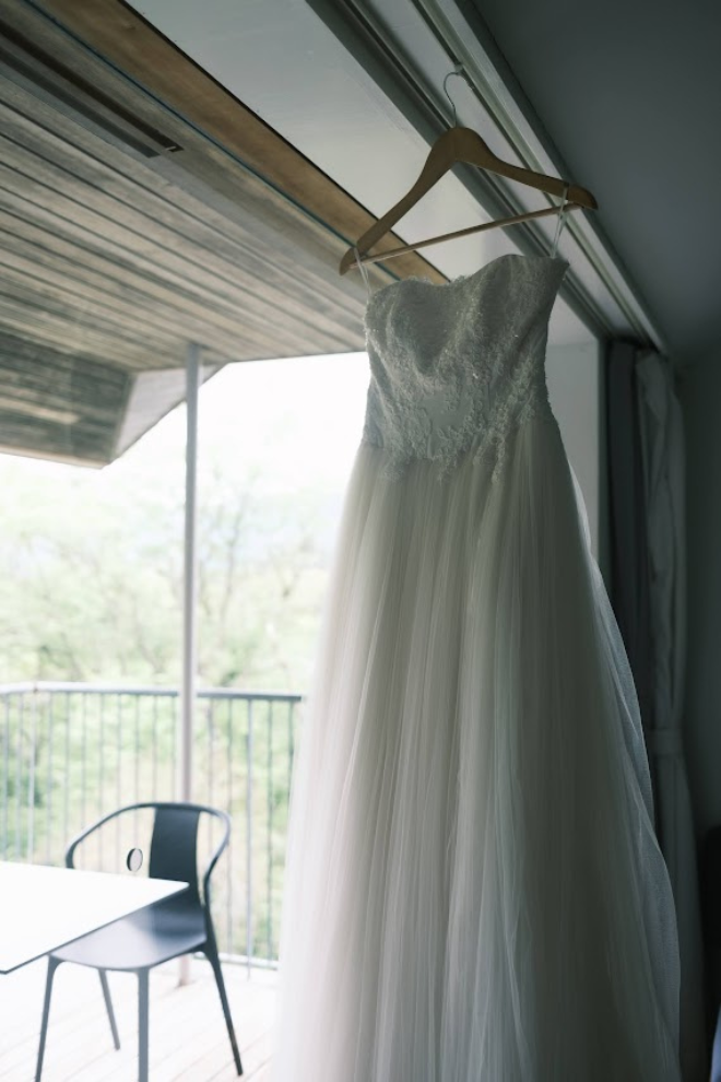 ご新婦様にお選びいただいたドレスはCli’O mariageのオリジナルドレス。