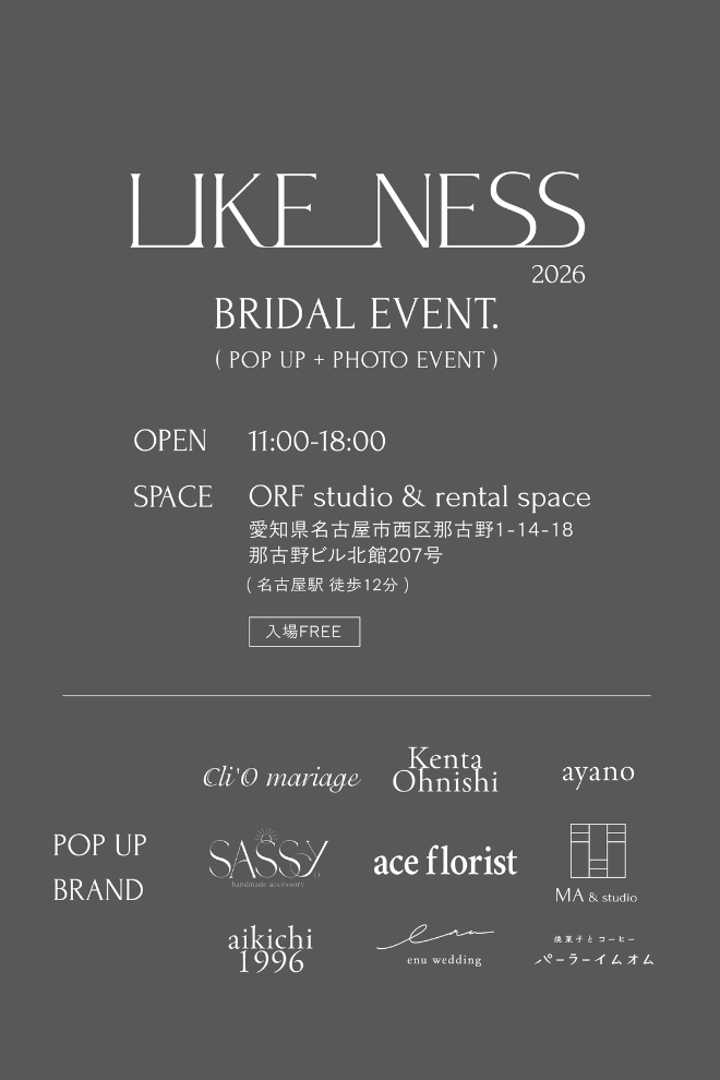 ブライダルイベント「LIKENESS 2026」名古屋に出店いたします