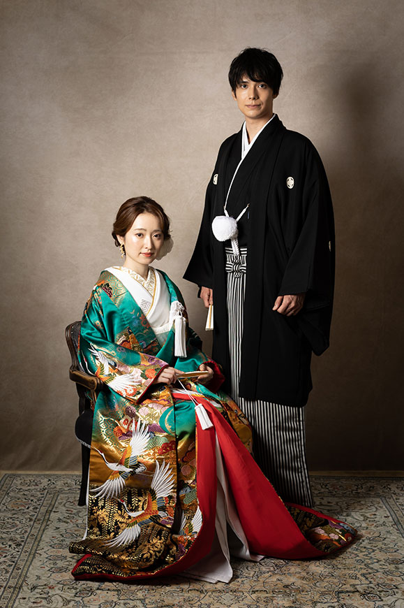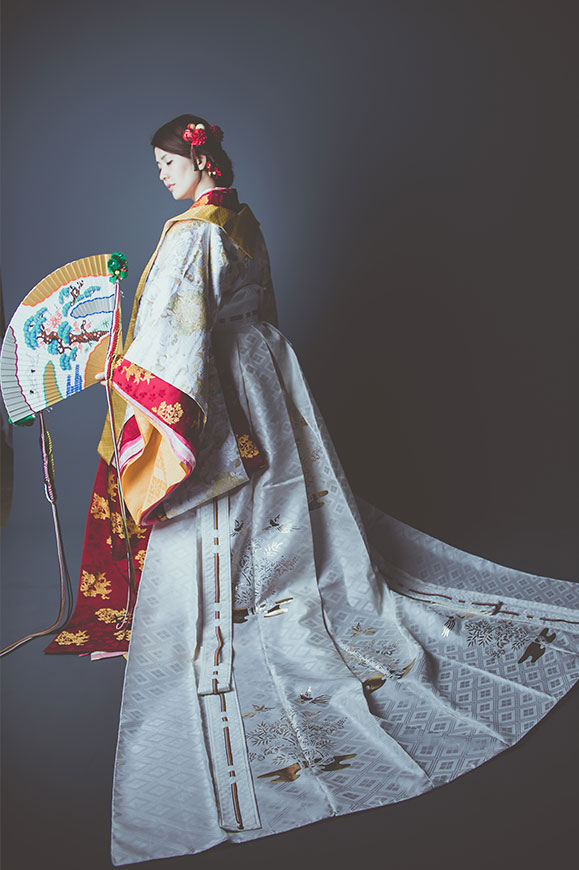 日本の伝統的な花嫁衣装の「白無垢」、様々な色の「色掛下」が選べる和装フォトプラン