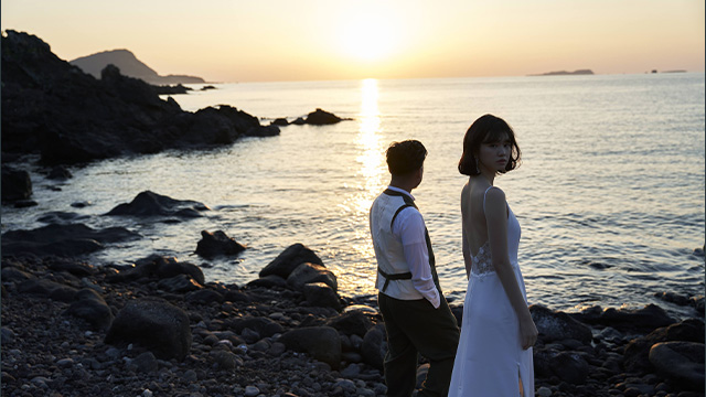 愛を誓い合った尊い瞬間を、未来へと紡いでいく。長い時間をかけて作り出された壮大な風景のように、ウエディングフォトの旅から、お二人の未来がはじまります。